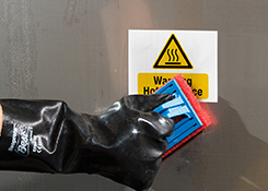 - ToughWash-skilte og -labels, som kan holde til at blive vasket af: Mørner ikke, når de udsættes for rengøringsmidler eller højtryk, og der fås også en ToughWash-version, som registreres i metaldetektorer som en ekstra sikkerhedsforanstaltning