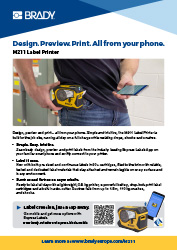 Design, forhåndsvisning og udskrivning, direkte fra din telefon. Den enkle og intuitive M211 er bygget til arbejdspladsen, kan køre hele dagen på en fuld opladning og kan modstå fald, stød og tryk. Aldrig tidligere har en bærbar printer på startniveau kombineret alle disse fordele i en enkelt nyskabende enhed.